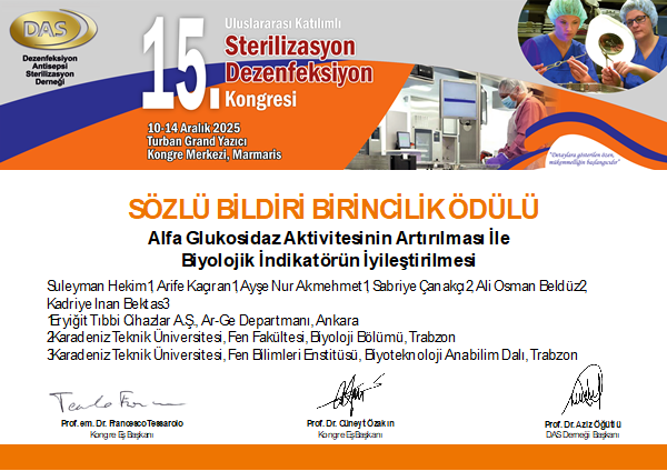 Eryiğit Biyoteknoloji olarak 15. Sterilizasyon Kongresi’ne katıldık. Kongre kapsamında yapılan değerlendirmede 1.’lik ödülünü Dr. Süleyman Hekim kazanmıştır.